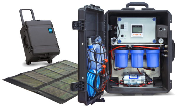 Sistem mobil, compact si usor de filtrare cu osmoza inversa ce produce 30-50 l apa / h, cantarind pana in 30 kg.